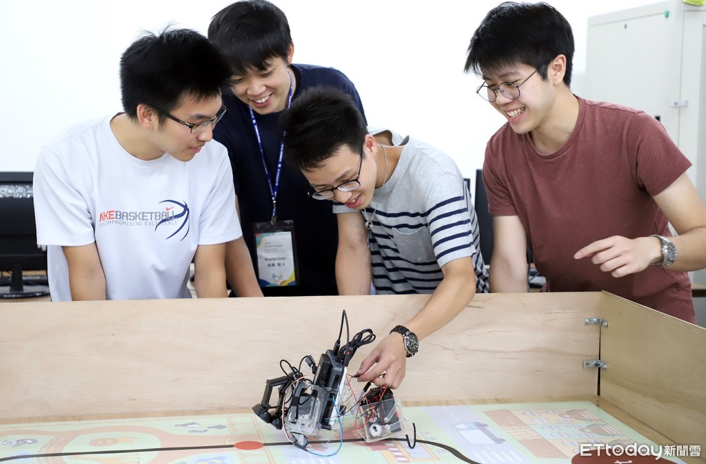 台科大與東京工業大學學生一起打造機器人。台科大舉辦全英語機械專題課程,由台科大機械系及日本東京工業大學教師共同授課,邀請日本學生來台和台科大學生一起上課,學習寫程式、機器人運動分析、機構設計等課程,合作打造可以自動控制的推車機器人,模擬未來由機器人協助購物及送貨的情景。