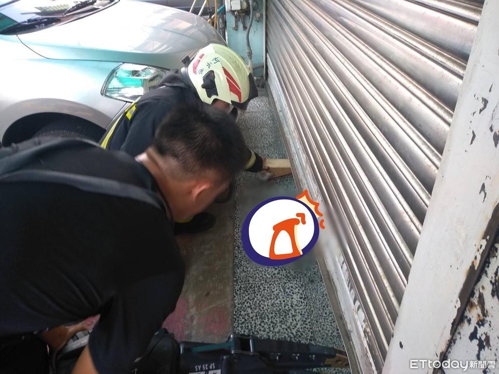▲桃園市大園區14日清晨發生78歲婦人被鐵捲門壓住,警消到場全力搶救。(圖/記者沈繼昌翻攝)