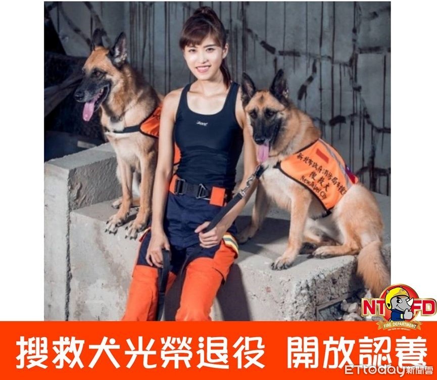 光榮退役!新北市消防局一對搜救犬兄妹檔「Chino」及「Mumu」犬齡達到退役標準,新北市消防局為了讓牠們有快樂的退休生活,在臉書官方粉絲團上PO出特搜消防正妹與兩隻毛孩的合照,尋求「願意照顧我們的毛孩子英雄的朋友們」認養。