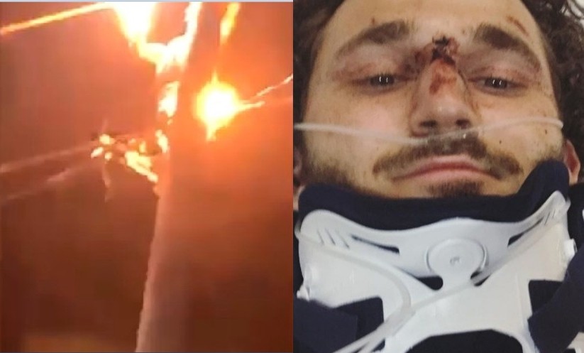 美國俄亥俄大學(Ohio University)附近發生一起可怕的觸電意外,一名男子酒醉後在同伴的鼓譟下突然挑戰爬電線桿,就在快爬到頂端時誤觸電線慘遭電擊,現場瞬間爆出大量火花,被電到麻木的他慘從9公尺高處重摔倒地,恐怖情景嚇壞在場目擊者。