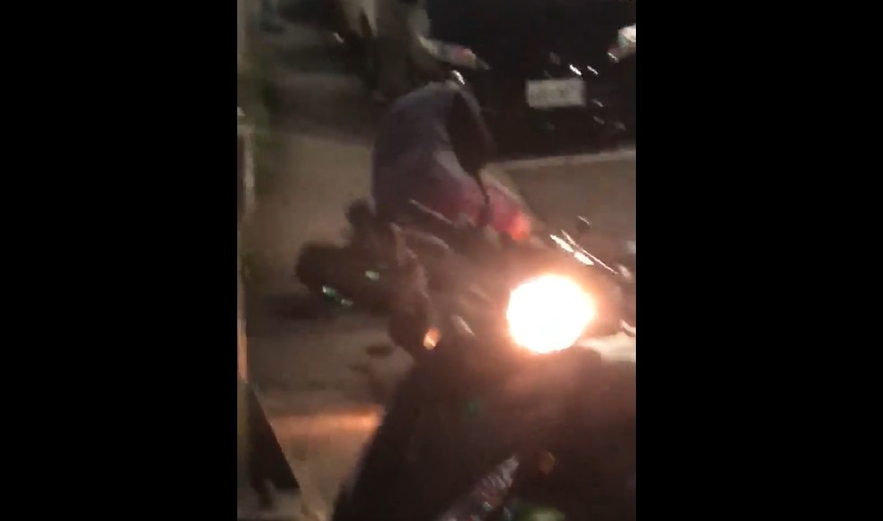 網路社團PO出的影片當中,有1名阿伯壓著1名年輕人痛毆,造成該名年輕人臉部以及眼睛紅腫,且阿伯打完人後隨即騎車逃逸,有民眾當場將影片力下PO網,也告知年輕人一定要驗傷提告。