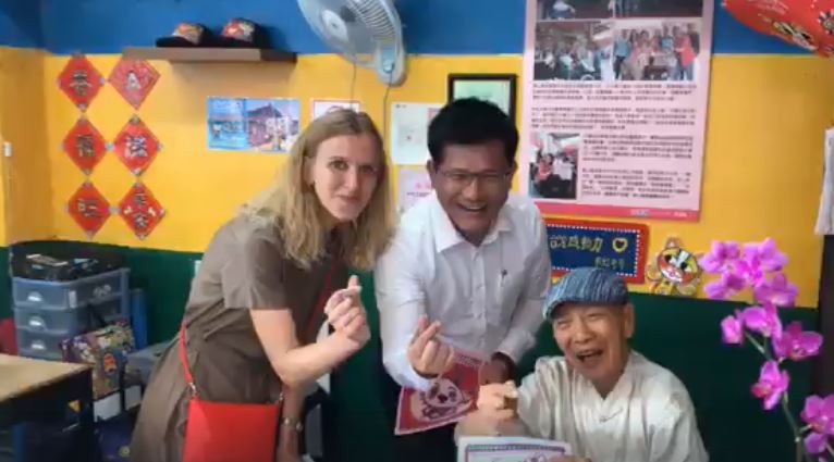 歷經石虎爭議風波,集集彩繪列車「國立集集美術館」18日上午正式啟用,俄羅斯插畫家卡佳也受邀來台出席。交通部長林佳龍下午與卡佳參觀台中知名景點彩虹村,盡地主之誼全程陪同講解,同時也將同為素人畫家的彩虹爺爺黃永阜介紹給卡佳認識,三人還一起比愛心合照,氣氛超暖心。
