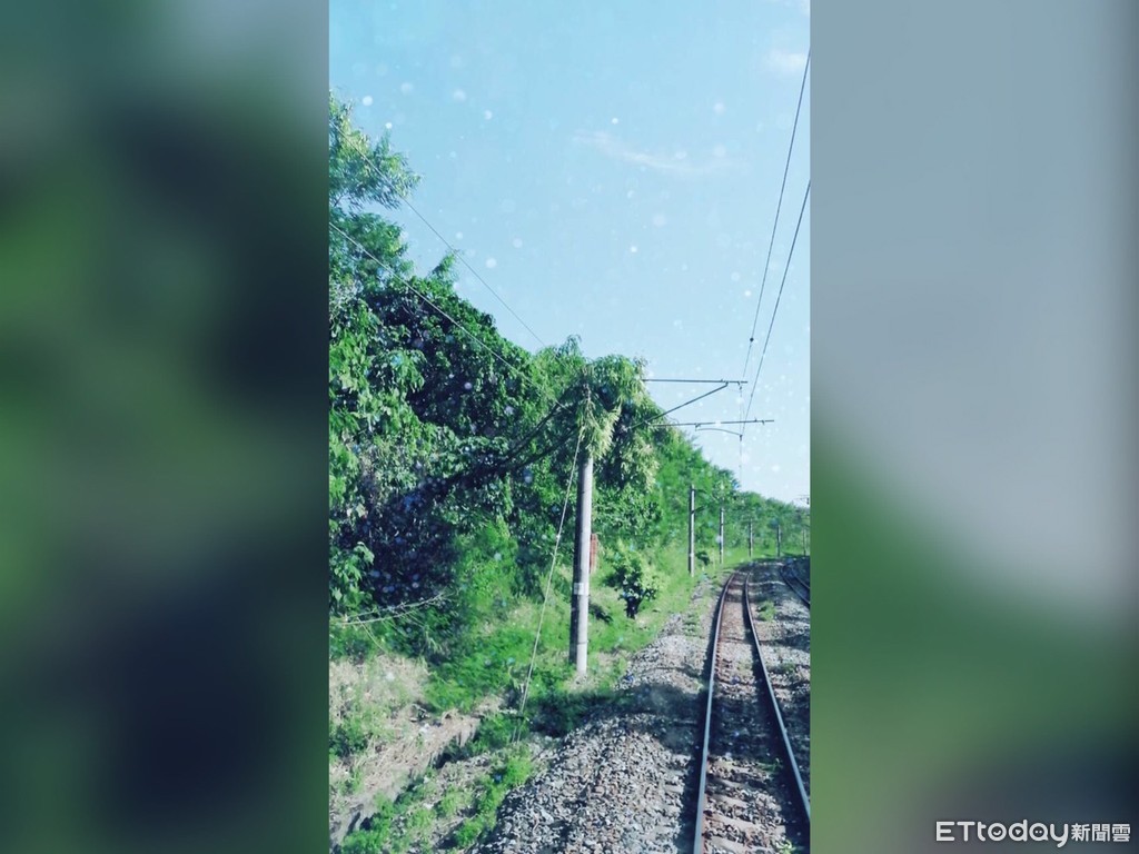 ▲因路樹傾倒碰觸電車線,導致台鐵崇德=新城電車線跳電,現已搶修完畢。(圖/記者蕭可正攝)