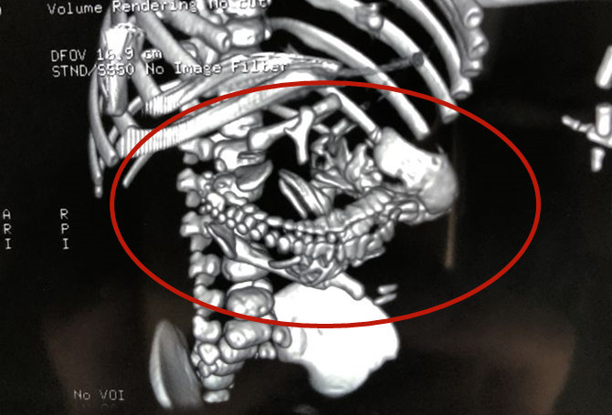 據《楚天都市報》報導,王萌家住湖北省黃岡市,當時,聽說肚子裡寶寶有異常,下午就急忙趕到湖北省婦幼保健院。接診後,超音波診斷科醫師立刻組織會診,經過仔細探查,發現包塊內竟可以看到胎兒的頭部、脊柱和四肢,疑似胎中胎。