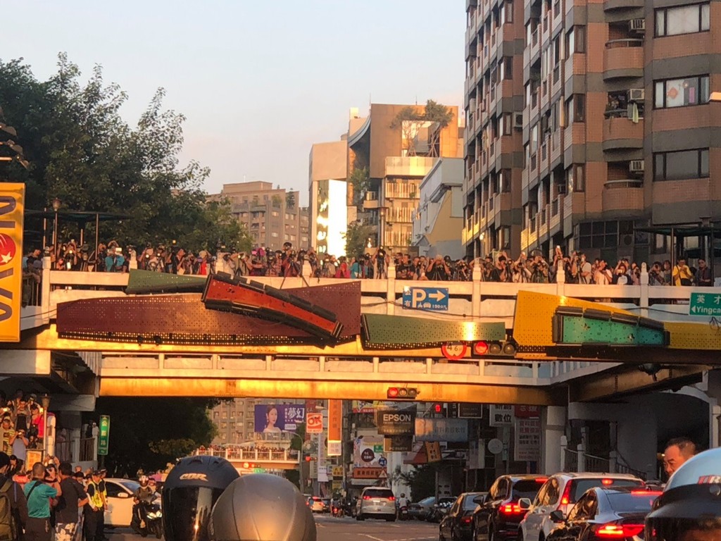 江肇國在臉書上表示,他經過公益英才路口天橋時,滿滿人潮完全超乎想像!看著年代久遠的天橋上站著滿滿市民,雖然美景在前,但第一時間想到的卻是天橋乘載的安全性。