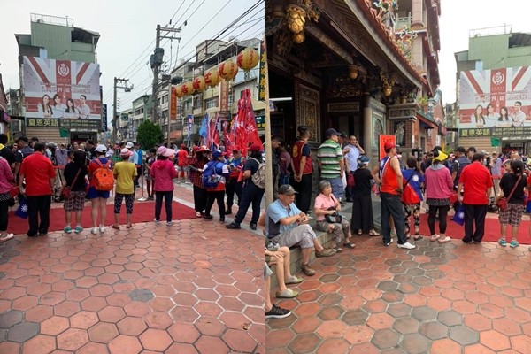 高雄市長韓國瑜19日下午前往鳳山二級古蹟「龍山寺」;當時有網友指出,在現場迎接的韓粉「不到60人」,場面相當淒涼。對此,有韓粉貼出了一張空拍照,現場人數看起來相當多,連龍山寺前方的紅磚廣場都站不下,跑到對面的騎樓去,與網友的照片形成鮮明的對比。