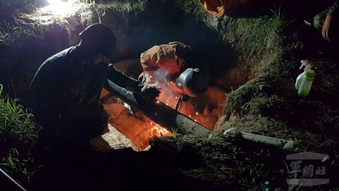 陸軍三支部補給油料庫桃園油料分庫18日實施基地測驗,模擬戰時夜間遭敵破壞、油管滲漏,官兵快速完成修復任務,展現精實訓練成果;分庫長江中校表示,藉由測驗培養同仁在不同時空、環境下的操作默契,進而加強官兵本職學能,爭取團隊榮譽。