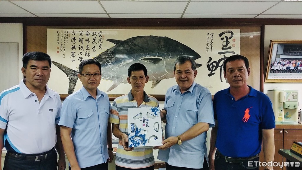 海巡署第七巡防區主任楊朝卿、南部分署第五岸巡隊隊長陳朝陽及東港區漁會理事長陳瑞龍公開表揚其義行,並致贈紀念品及感謝狀致謝。