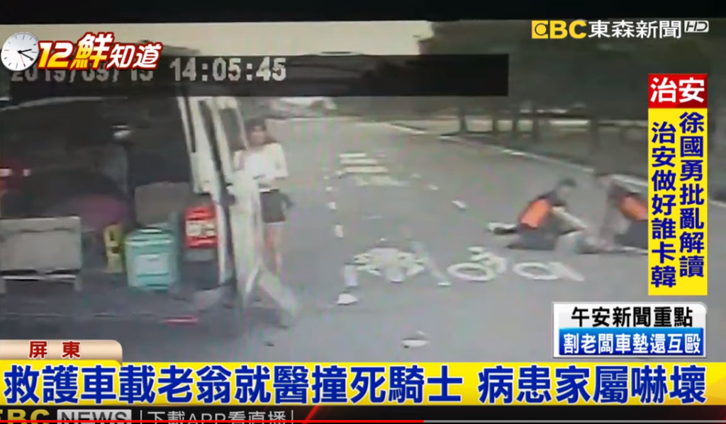 救護人員表示,發生車禍後她們立刻下車,發現鐘男沒有呼吸心跳,立刻幫傷患進行CPR。事後,鐘男家屬也質疑,救護車值勤的過程中是否有疏失。