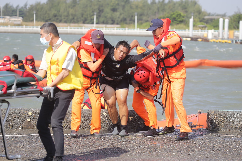 嘉義縣區域聯合搜救暨海洋污染應變演練項目,包括摸擬營業船舶故障引發火災,救災期間民眾落海溺水、船舶滑油洩漏導致油污向港外擴散,再由第四岸巡隊即時救援溺者,消防隊快速抵達現場滅火。環保局協同嘉義縣媽祖環保艦隊船筏布設攔油索,實地演練攔油、汲油、清理殘油、善後處理等應變作業,並利用海保署海洋油污染擴散模式摸擬油污擴散方向進行圍堵。