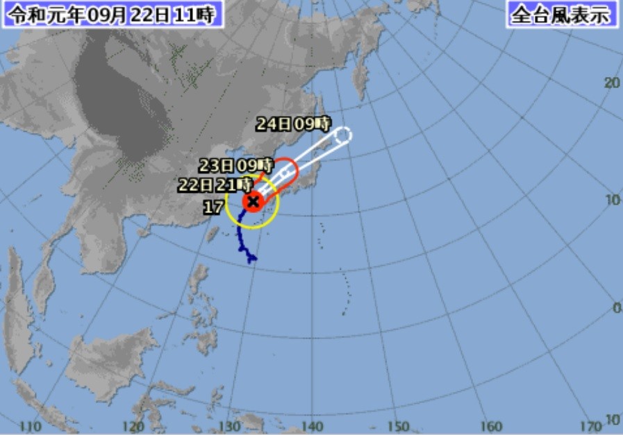 氣象廳預測,23日起24小時內降雨量,四國約400毫米、九州300毫米、近畿180毫米、中國150毫米;24日起的24小時,北海道100至200毫米、近畿及北陸、東北地區50至100毫米。各地也要另外注意河川暴漲、淹水情況。