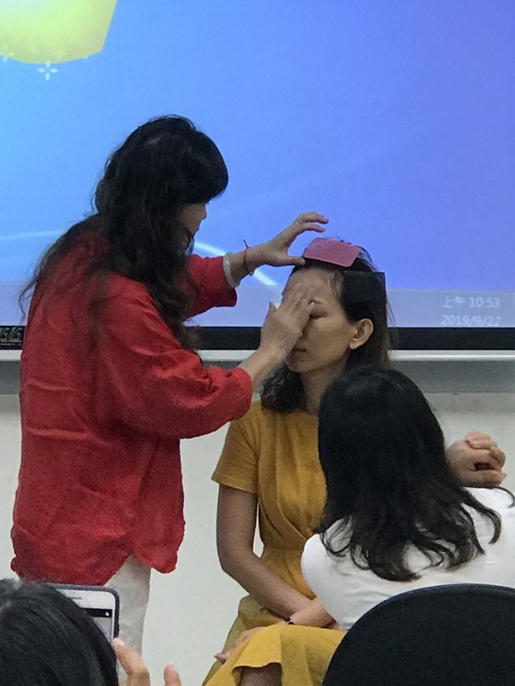 活動最後由朱淑貞小姐與新住民分享彩妝技巧,彩妝師巧妙融合色盤上不同顏色,巧手一揮就能加強五官線條,讓平日辛勤工作略顯疲態的新住民煥然一新、神采飛揚。