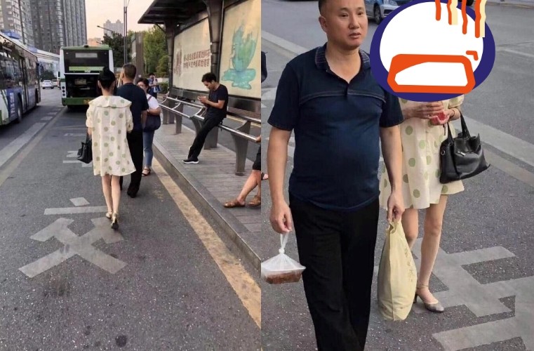 仔細看地上的字體,可以推測這張照片是在大陸拍攝的,網友們紛紛看傻表示,「確認過眼神,是那要命的人」、「好一個背影殺手」、「母湯啦」、「遠看一朵花,近看嗚嗚」。