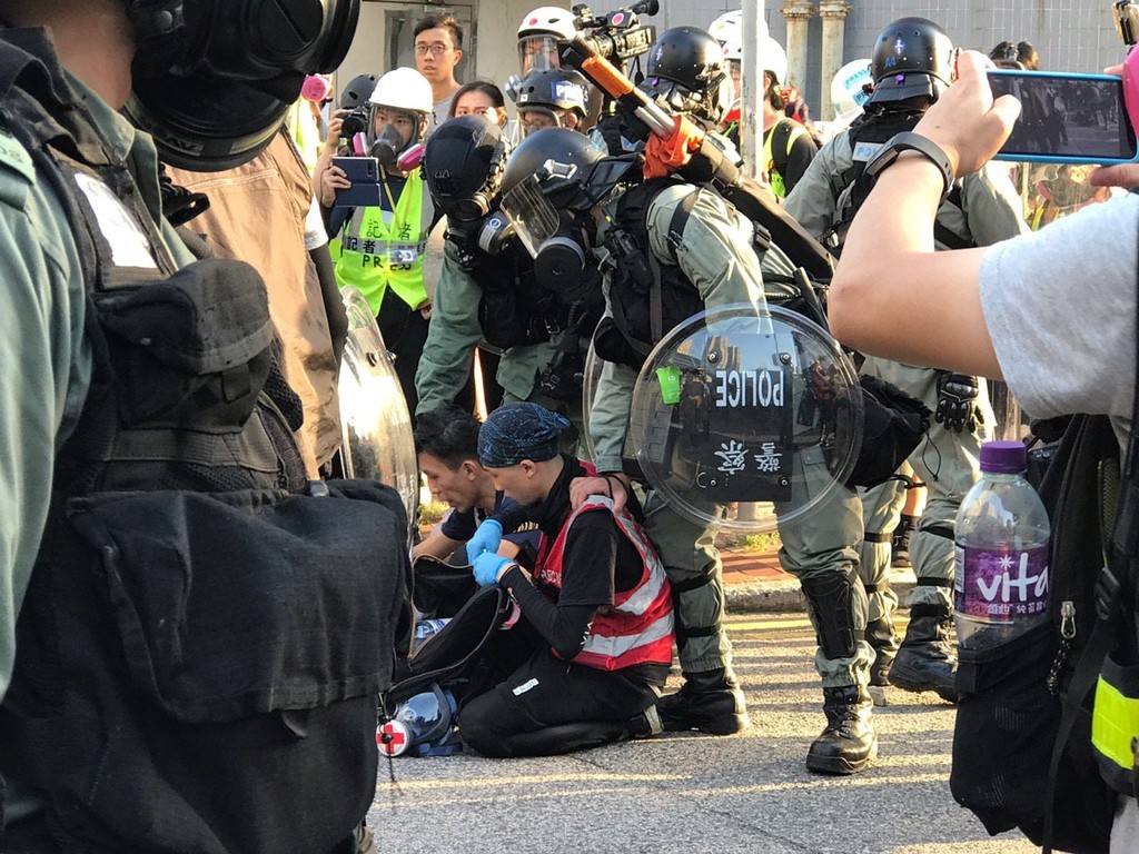 綜合港媒報導,遊行當日,警方拘捕了一名15歲的男學生和一名男保險從業員,並指出他們分別藏有改裝雨傘和雷射筆等武器。其中,該名15歲男學生更被指控,藏有80厘米的改裝雨傘、長約55厘米的行山杖、一支綠茶混合腐蝕性液體、噴漆、頭盔及雷射筆等物。