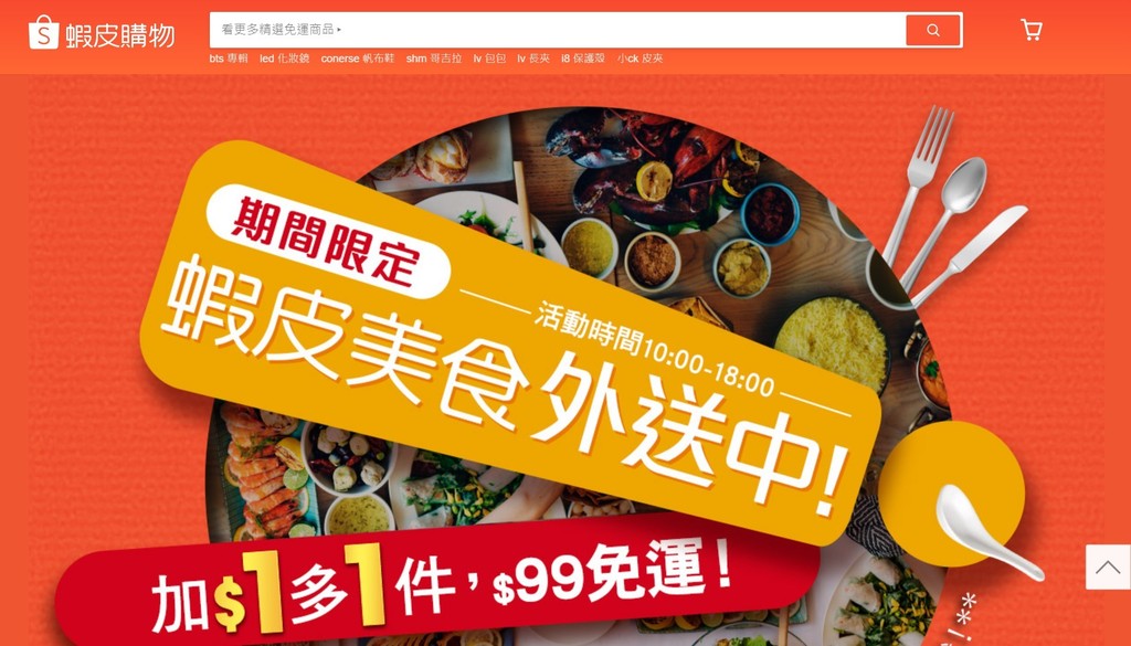 ▲蝦皮購物即日起推出期間限定美食外送服務。(圖/翻攝自蝦皮購物官網)