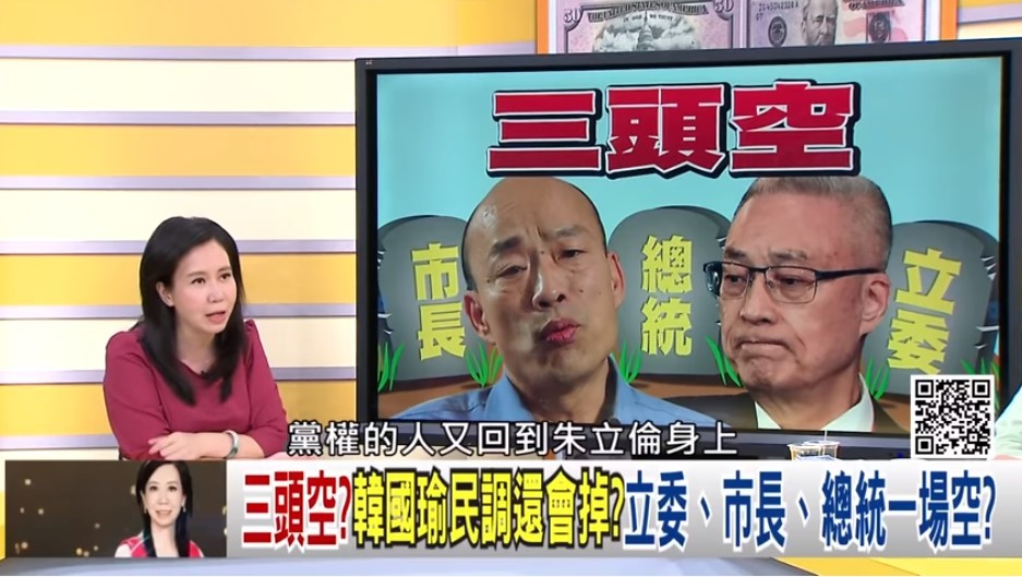 陳凝觀則認為,假如2020大選真的是三頭空的結果,國民黨黨主席吳敦義可能要下台負責,韓國瑜也掌握不了黨權,甚至有可能面臨罷免,「所以搞不好真正可以掌握黨權的人,又回到朱立倫身上。」