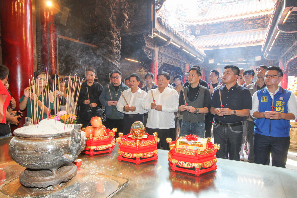▲顏清標和演員上香祈求拍攝順利。(圖/台中市政府提供)