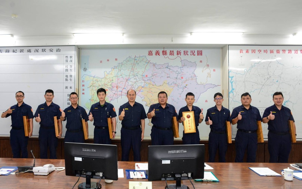 嘉義縣警察局25日利用局務會報,由縣警局局長廖宗山公開表揚為民服務績優的員警,計有民雄分局溪口分駐所警員劉信宏、何燦洲:超商店員與警方積極阻詐 婦人保住45萬元;朴子分局朴子派出所警員董英偉、黃淑芬:熱心警協助路倒民眾就醫;水上分局太保分駐所警員鄭惠珊、董晉瑋:女警暖心安撫迷失童 鄰里廣播建功助返家;布袋分局義竹聯合所巡佐侯昭遷、警員林龍輝:迷途老翁雨中徘徊路上險象環生 布袋警幫助返家;中埔分局頂六派出所巡佐兼所長陳宏甲、警員陳性瑤、黃思惟:獨居八旬失智翁半夜迷失 中埔警黑夜搜救助返家;竹崎分局阿里山派出所警員劉慶瑞、柯宏林:七月鬼門開 鬼門關前「警」急救人;竹崎分局瑞里派出所巡佐兼所長江良益、警員張仕平:導航系統誤導進退兩難 警協助民眾車輛脫困等7件15人。