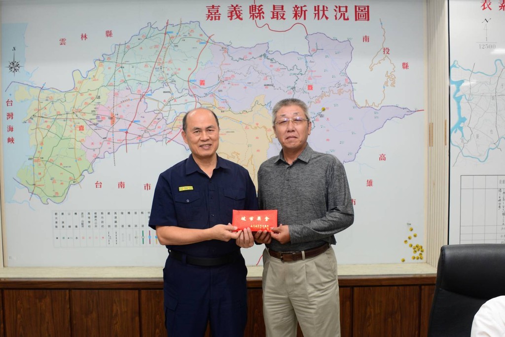 嘉義縣議會張議長明達及警察之友會曾秋猛理事長,25日專程前往警察局頒發加菜金,議長張明達親自致贈16萬元加菜金,另代秘書長致贈10萬元,理事長曾秋猛致贈15萬元,並由局長廖宗山代表警察局受領,以鼓勵員警英勇執勤,順利緝獲犯嫌,守護地方治安。