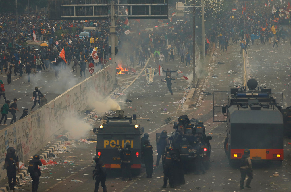 大批印尼學生上街示威抗爭,要求政府全面撤回法案。警方表示,在24日國會大廈外的示威活動中,共有265名學生和39名警察受傷。警方於凌晨展開清場,動用催淚瓦斯和水炮車驅散群眾,同時逮捕94人。