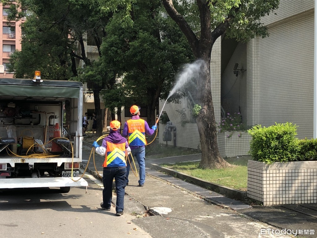 ▲台南市衛生局針對成大校園進行化學防治及擴大採血。(圖/記者林悅翻攝,下同)