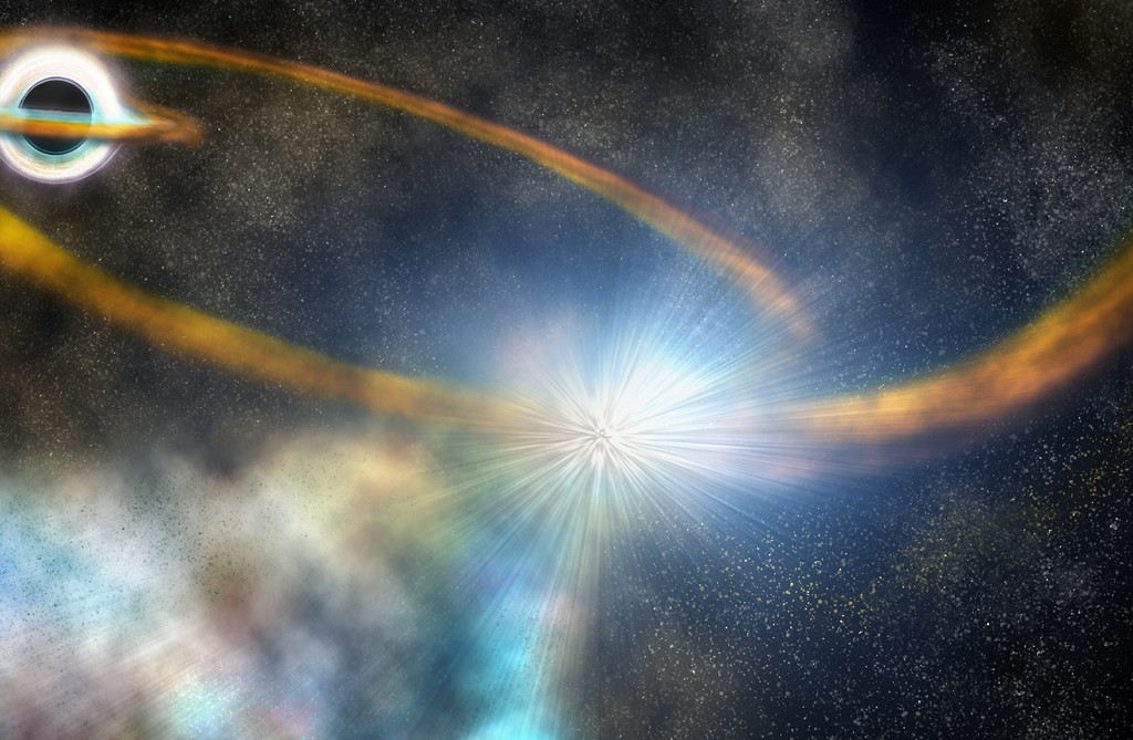 ▲呈現橘紅色的吸積盤纏繞著黑洞。(影/youtube/VideoFromSpace)