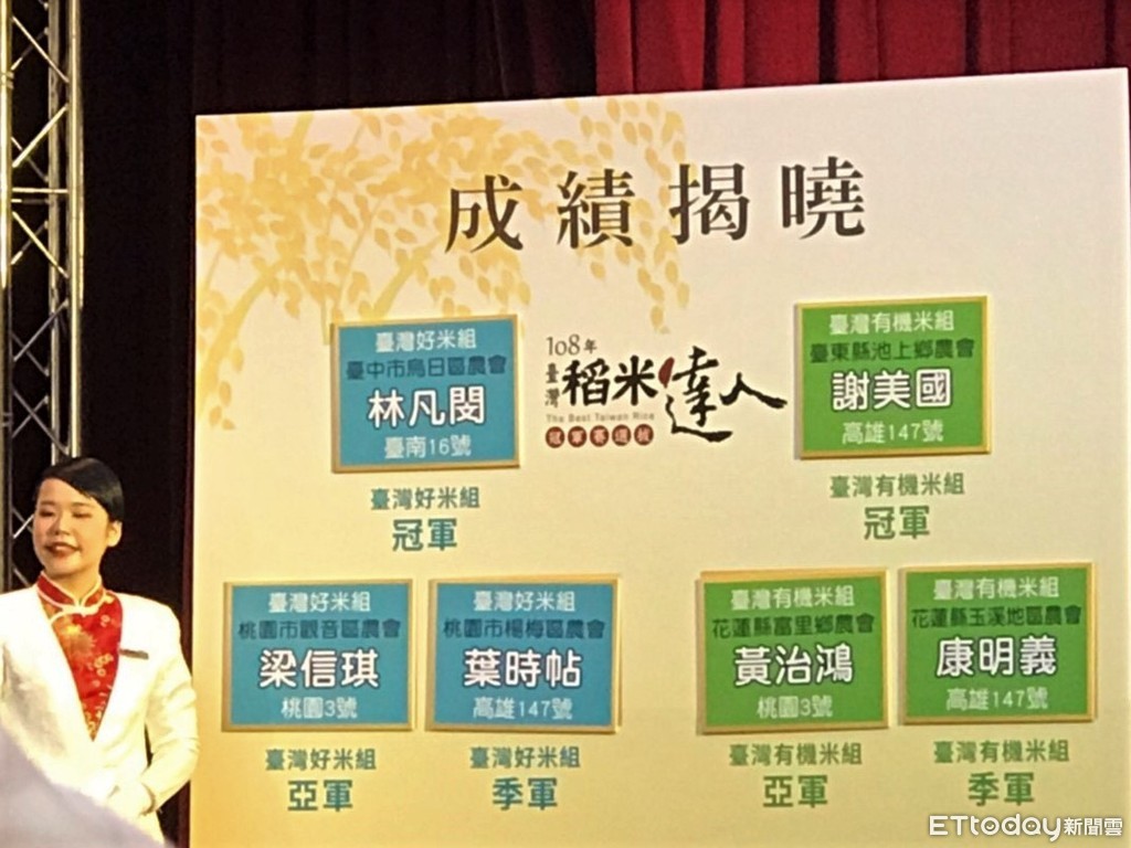 「台灣稻米達人冠軍賽」複賽成績26日下午由農委會主委陳吉仲揭曉,代表池上鄉農會參賽的87歲稻農謝美國一舉拿下有機米組的冠軍,消息傳來地方相當高興,台東縣長饒慶鈴表示,一定兌現初賽時的承諾,加碼頒發30萬元獎金。