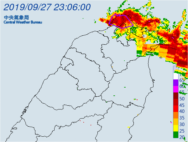 氣象局27日深夜11時11分發布「大雷雨即時訊息」,範圍包括:台北市士林、北投區;新北市淡水、三芝、石門、金山、萬里區將出現劇烈降雨、雷擊,坍方、落石、土石流,低窪地區慎防淹水,預計持續時間將至凌晨1時15分。並針對北北基宜4縣市發布「豪雨特報」,晚間至28日基隆北海岸有局部大雨或豪雨,大台北及宜蘭有局部大雨。