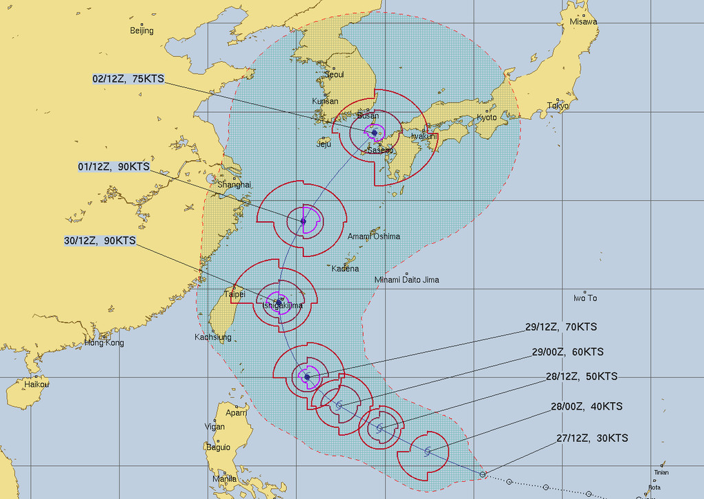 ▲美軍最新預測準米塔颱風路徑。(圖/翻攝Facebook/台灣颱風論壇|天氣特急)