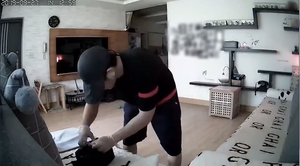 一名網友在臉書社團「基隆人大小事」PO文並附上一段監視器畫面,只見27日下午2時13分左右,一名穿著黑色上衣、深色短褲、拖鞋的男子,頭戴黑色鴨舌帽,手上還戴著半透明手套,潛入一處住宅,先是將位於電視機右上方的監視設備鏡頭轉向,隨即環視周圍,找尋下手目標,接著他看到沙發附近放置的黑色包包,伸手拉開每一格的拉鍊,逐層翻找。