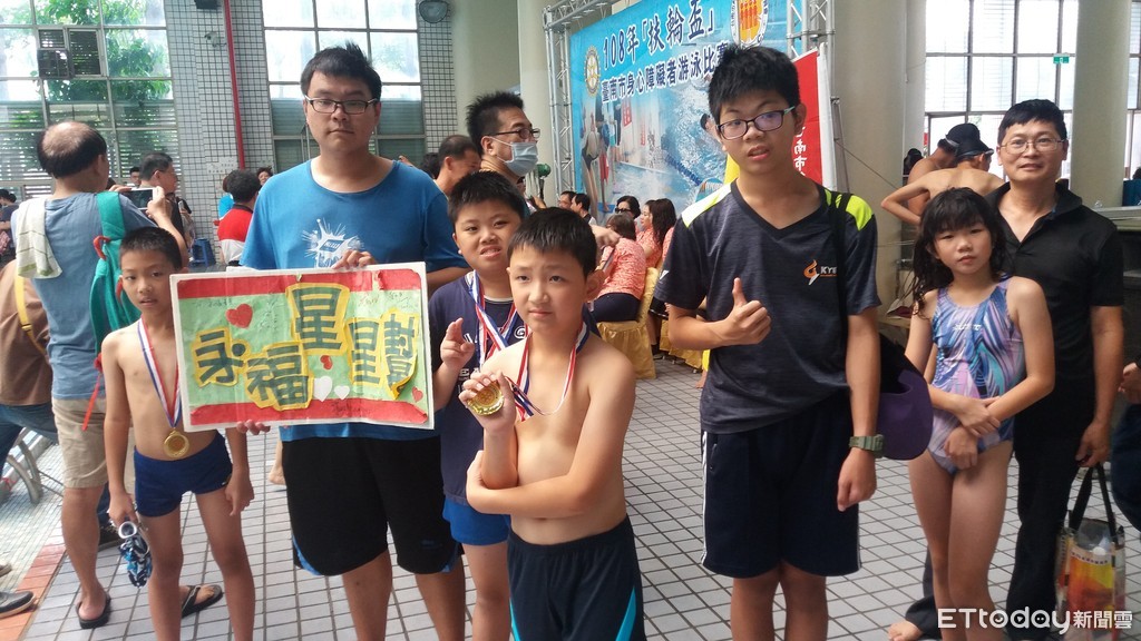 ▲永福國小星星兒,在台南市扶輪盃身心障礙者游泳比賽大放異彩。(圖/記者林悅翻攝)