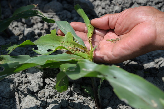▲玉米田快被秋行軍蟲啃光。