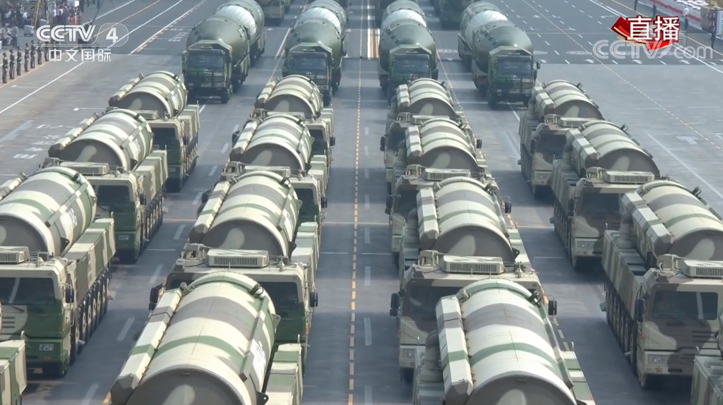 中共建政70周年閱兵式1日早上登場,規模比過去盛大,受閱武器裝備全部為國產現役主戰裝備,不少高新裝備更首次亮相。其中,東風-31AG洲際導彈也在閱兵式中展出,它可攜帶5至6枚核彈頭,射程介於12000至13000公里之間,可覆蓋大部分北美地區,且更具機動性。
