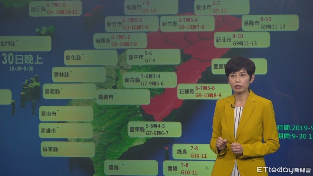 在降雨的部份,今天下午過後到目前,宜蘭地區一陣陣雨勢越來越大,宜蘭山區累積雨量快速增加,在過去這一兩小時,桃園以北也有明顯雨勢,包含宜蘭、大台北地區、桃園地區的時雨量都有達到30~40豪米,顯示颱風影響加大當中。羅雅尹重申,今天晚上到明天清晨是颱風影響最顯著時刻,尤其北台灣到宜蘭到北部地區風雨最顯著,請大家最好準備。