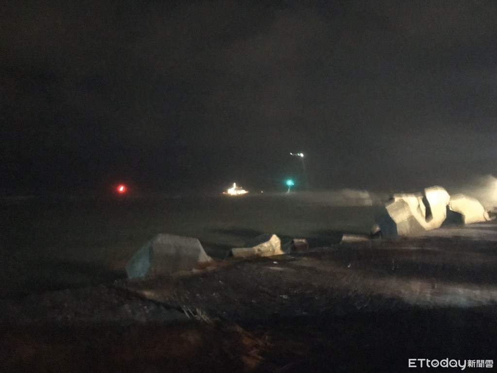 ▲3名釣客深夜闖入禁區中垂釣,不料卻受困5小時,只能緊抓燈塔與風浪搏命。(圖/記者吳奕靖翻攝)