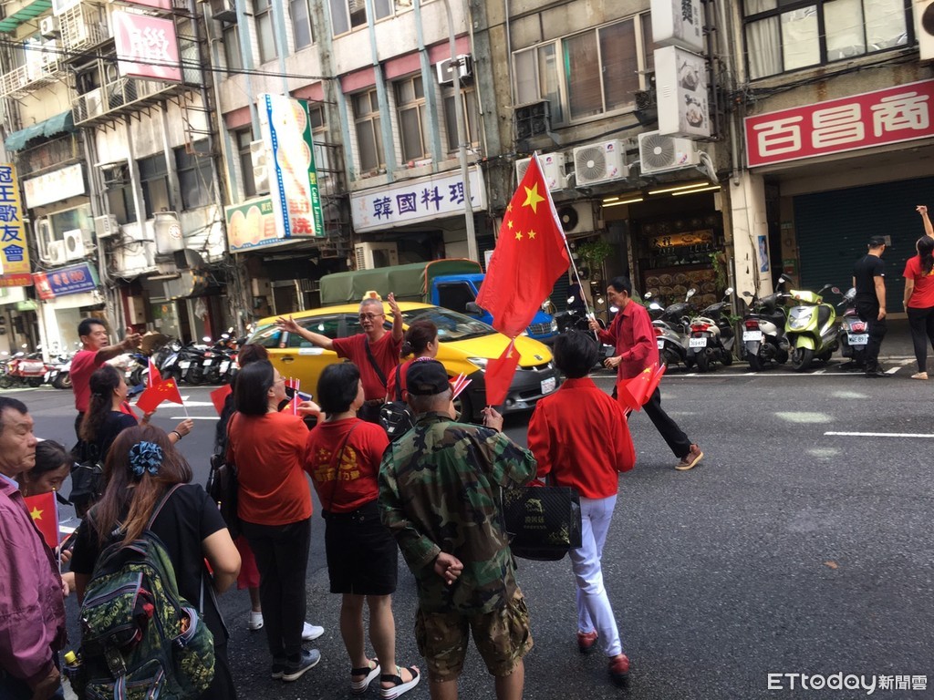 1日上午9時許,愛國同心會在西寧南路的黨部前舉辦「升旗典禮」,預計在頂樓懸掛5星旗以及一面寫有「我愛您中國」的大布條,但警方卻要求對方將2樣東西收起來,造成現場愛國同心會成員當場傻眼。