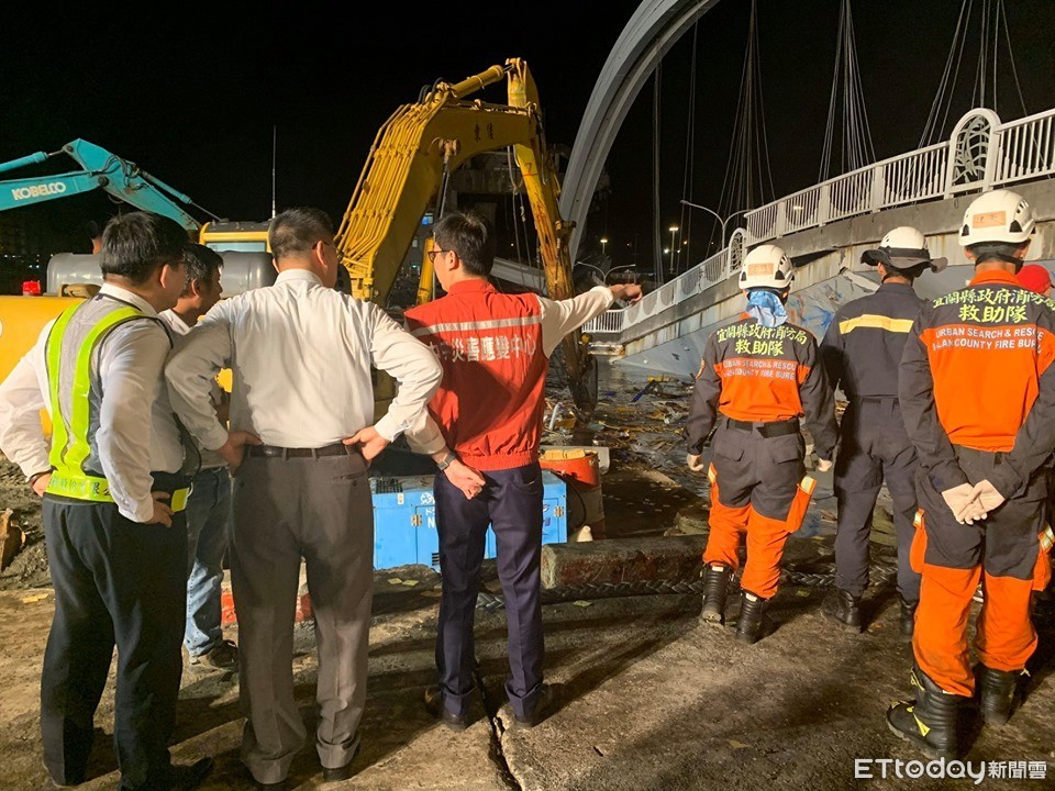 凌晨1點半,陳其邁再更新發文,「持續搜救中。一點左右,基隆大禹海事工程趕來加入救援行列,為水下搜救增添人力。怪手司機、海巡人員、民間救難大隊及救難人員、宜蘭縣消防局及交通部同仁等,全力救災中。謝謝他們!」