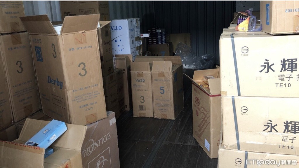 ▲▼專案小組於新北市土城區及板橋區山區之兩處隱密貨櫃倉庫搜索,當場查獲哈克特級香菸計2000包。(圖/海巡偵防分署提供,下同)