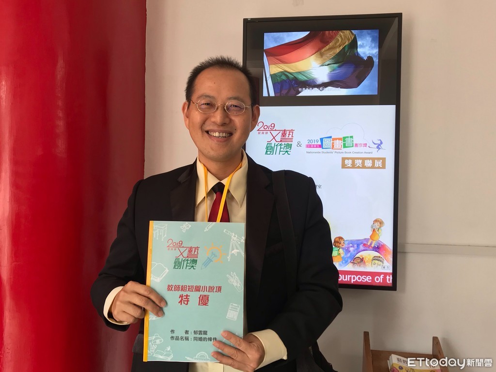 ▲大安國中國文老師郁雲龍的短篇小說《同婚的條件》獲得教育部文藝創作獎特優。(圖/記者崔至雲攝)