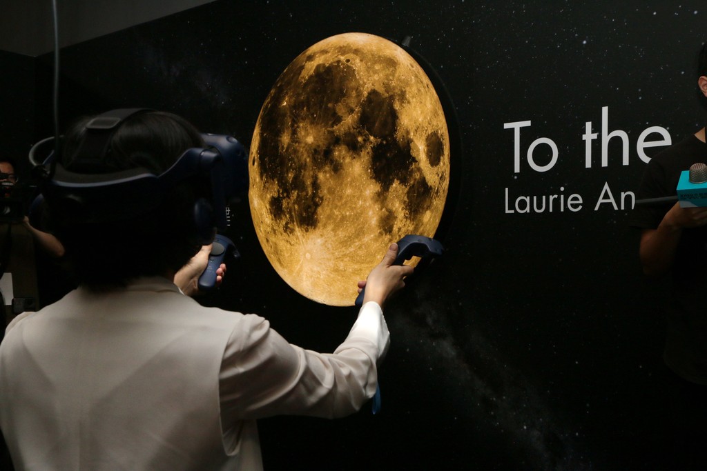 文化部主辦的「2019文化科技國際論壇」10月4日至5日在台北華山文創園區展開,今(3)日文化部長鄭麗君率先體驗現場14件文化科技創作,她對於黃心健與安德森的作品《登月》(To the Moon) 印象深刻,提到今年是人類登陸月球的50年,「這件作品重新讓我們思考地球跟月球的關係,也讓我們從太空的視野回過頭來看人類自身。」