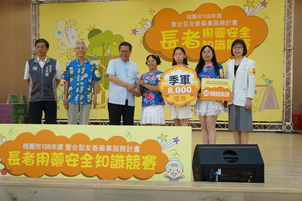 看病要找醫生,用藥要諮詢藥師,而對於年長者而言,難免因一些小病痛上身得用藥。「桃園市2019年度長者用藥安全知識競賽」」3日於市府舉行頒獎,由樂活棒棒隊奪冠,龍寶貝醫藥小尖兵隊、桃園銀髮樂活隊分別獲得亞軍、季軍,參賽隊伍62隊,有3位90歲、11位80歲以上的長者參加,共同以寓教於樂的答題方式提升用藥知識。