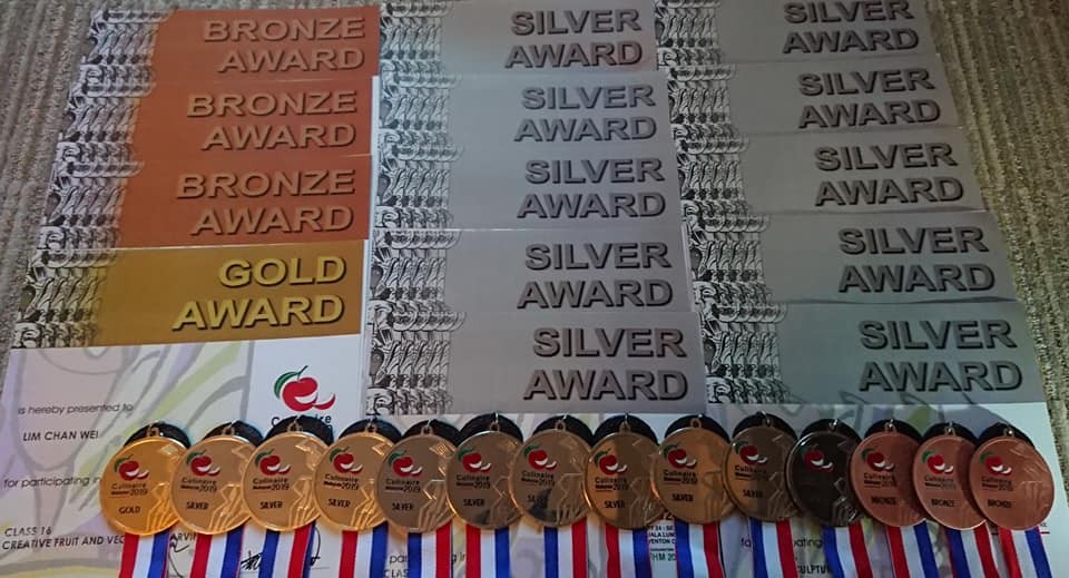 以「師徒制教學」傳承藝術果雕技術,環球科大的選手在第15屆2019FHM馬來西亞吉隆坡國際廚藝競賽中,榮獲1金10銀3銅佳績,包括:藝術類個人賽,現場90分鐘水果雕刻競賽獲獎之海青二甲林展蔚金牌;海青二甲招偉康銀牌;海青二甲楊曉瑩銀牌;海青二甲莊佩敏銀牌;海青二甲張惠潔銀牌;海青二甲謝叔云銀牌;觀餐二甲趙治豪銀牌;海青二甲陳秀微銅牌。2人團體現場水果雕刻競賽成績,銀牌:招偉康、趙治豪;銀牌:謝叔云、莊佩敏;銅牌:陳秀微、張惠潔。另外,今年深耕輔導之東吳高職餐飲科三年級許景翔選手也榮獲一面銀牌。