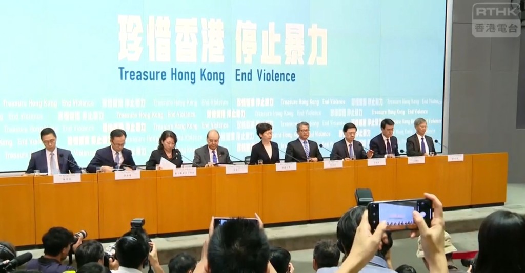 林鄭月娥說,近日發生的暴力行動升級,令社會進入危險邊緣,加上參與的學生不斷上升,「我們必須盡一切努力壓制暴力,挽救香港的現在,挽救香港的未來。」