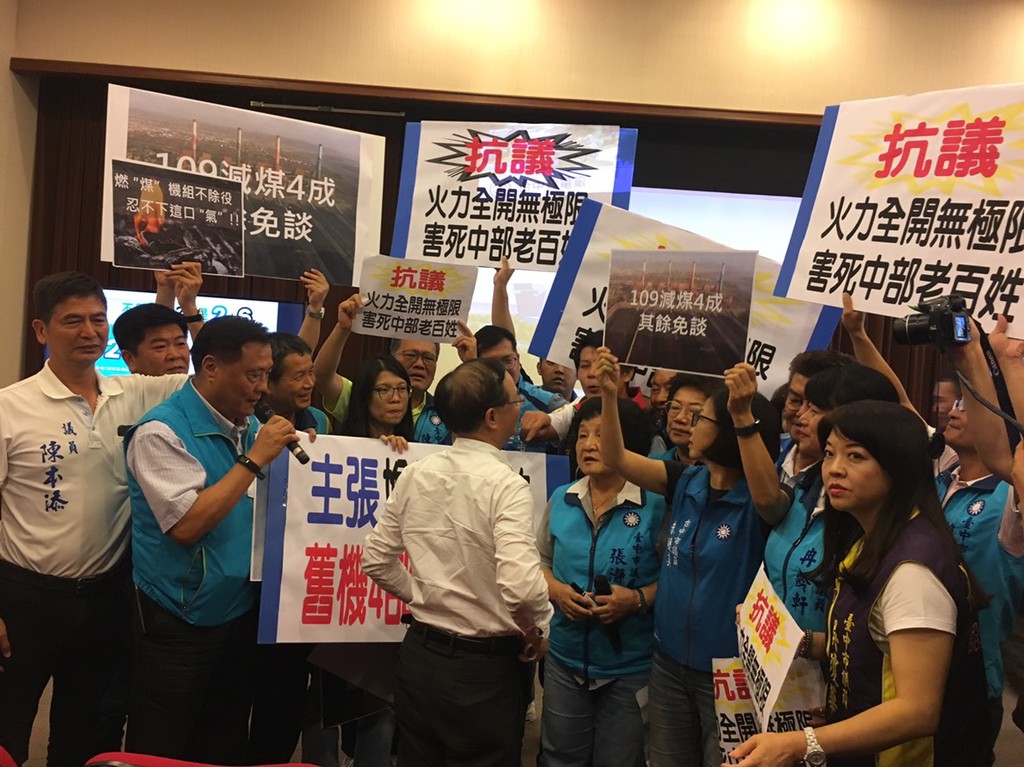 李中、黃馨慧、陳本添等人痛斥台電,桃園觀塘天然氣接收站可以因為蘇貞昌要選縣長而停止、新北深澳燃煤電廠也可以停建,為什麼台中燃煤機組不能停?