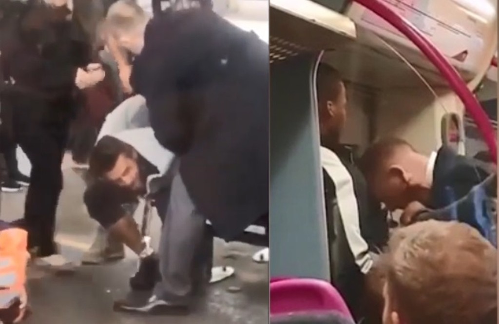 另一段影片則顯示,男乘客隨後被男子抓下車,以制服將男乘客銬在上敏斯特橋站(Upminster Bridge tube station),讓隨後到場的警方逮捕。