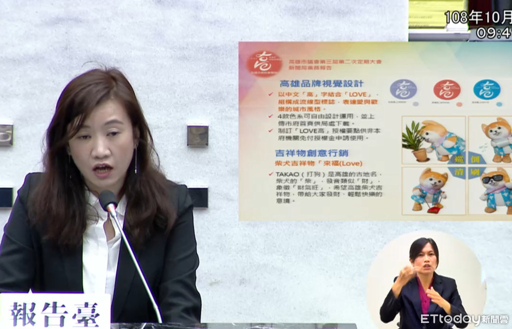 ▲新聞局長王淺秋不小心失言,指「花媽」是新聞局過去的吉祥物。(圖/翻攝自「高雄市議會即時串流」)