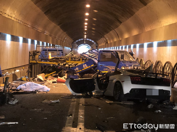▲游翰甯隧道內飆車閃避不及撞上工程車的現場一片狼藉。(圖為資料照/記者趙永博攝)
