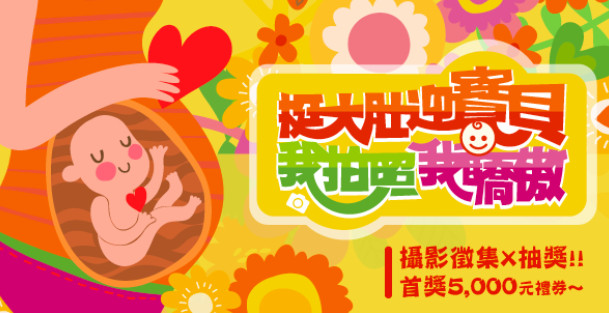 「挺大肚迎寶貝‧我拍照我驕傲」網路攝影徵集活動在10月1日開跑,只要將活動標籤貼到懷孕肚皮上,或是手繪活動主題在孕肚上拍照上傳,就能獲得抽獎機會。此活動首獎5000元禮券,另有廣告創意獎:空氣清淨機,額外贈送給最具創意的10名投稿者。主辦單位衛福部國民健康署歡迎懷孕的民眾,或是身邊有懷孕親友的民眾前往參加。
