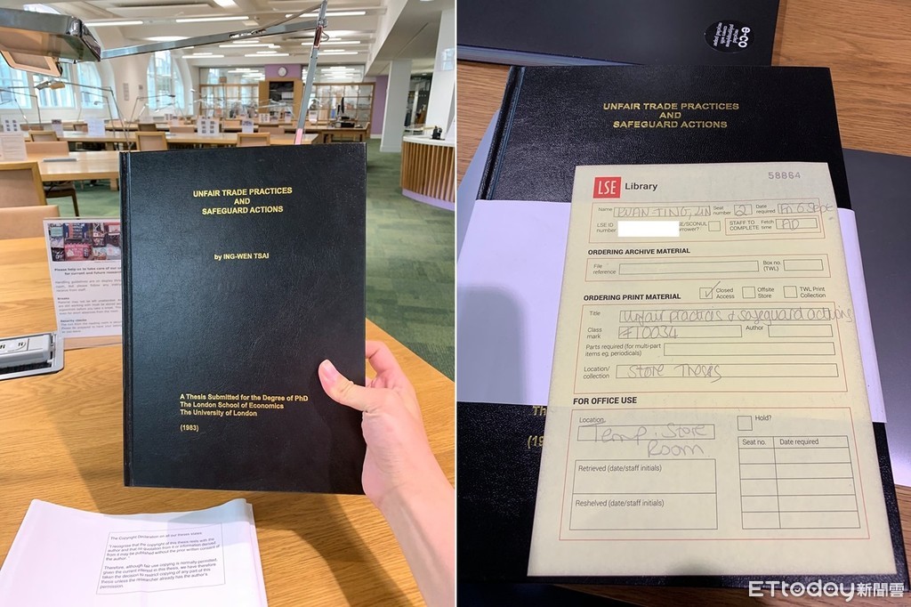 ▲林冠廷赴英國倫敦大學政經學院圖書館,親眼閱讀總統蔡英文論文。(圖/網友林冠廷提供,請勿隨意翻拍,以免侵權,以下皆同。)