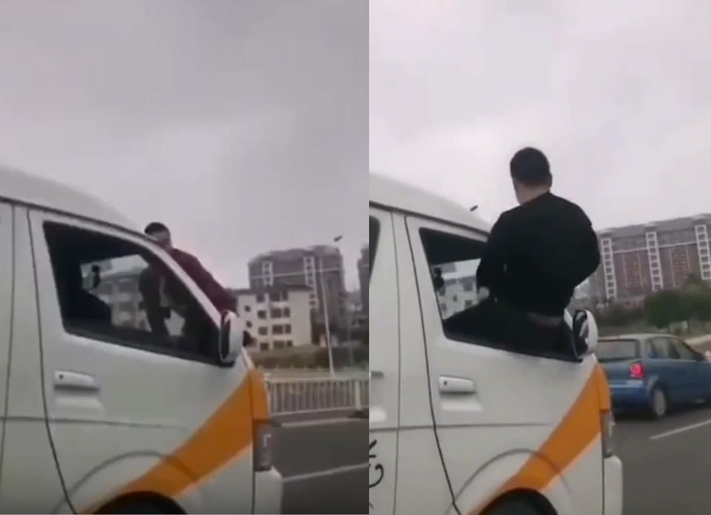 影片中可見,一輛小貨車在路上行駛,一名男子竟然像是拍動作電影一樣,腳踩著保險桿,人趴在檔風玻璃上,衣服隨風飄盪,之後副駕駛座的朋友整個身體伸出車外,並用一根木棍不斷拍打男子的屁股。